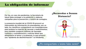 Agradecemos al Dr. Ricardo Cortés Alcalá, Director General de Promoción de la Salud, a la Dra. Judith Coronel Morales, Directora General de Comunicación Social, y al Dr. Víctor Cortez, Director de Difusión e Imagen de la Secretaría de Salud por compartirnos la imagen de “Susana Distancia” para usarla en esta exposición