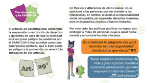 En este siglo la constitución mexicana ha tenido reformas trascendentales para la vida de las y los mexicanos, una de ellas fue la realizada en 2011 para fortalecer el sistema de reconocimiento y protección de los derechos humanos, la pandemia provocada por el virus SARS-Cov-2 es un evento histórico que ha puesto en riesgo el reconocimiento, la garantía y ejercicio de esos derechos a nivel mundial.