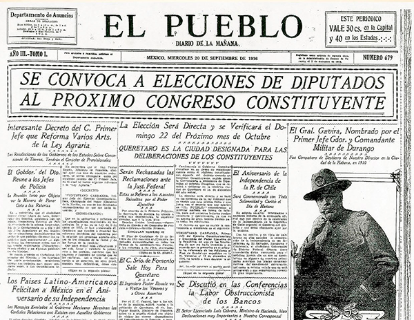 A principios de 1916 la Revolución Constitucionalista tenía una clara ventaja sobre las otras facciones. Ese año Carranza regresó a la ciudad de México para organizar su gobierno, establecer las bases para la institucionalización del movimiento revolucionario y restablecer el orden constitucional. Una de las disposiciones más importantes para conseguirlo fue la convocatoria para la elección de diputados que integrarían el Congreso Constituyente.